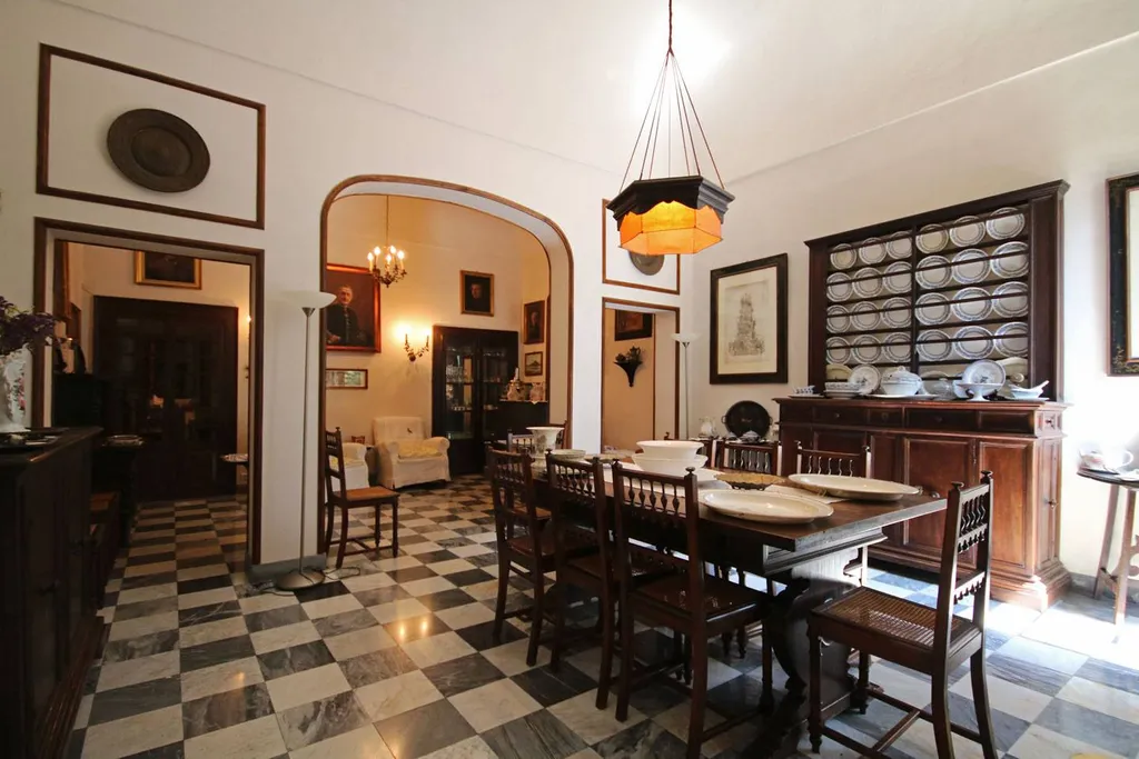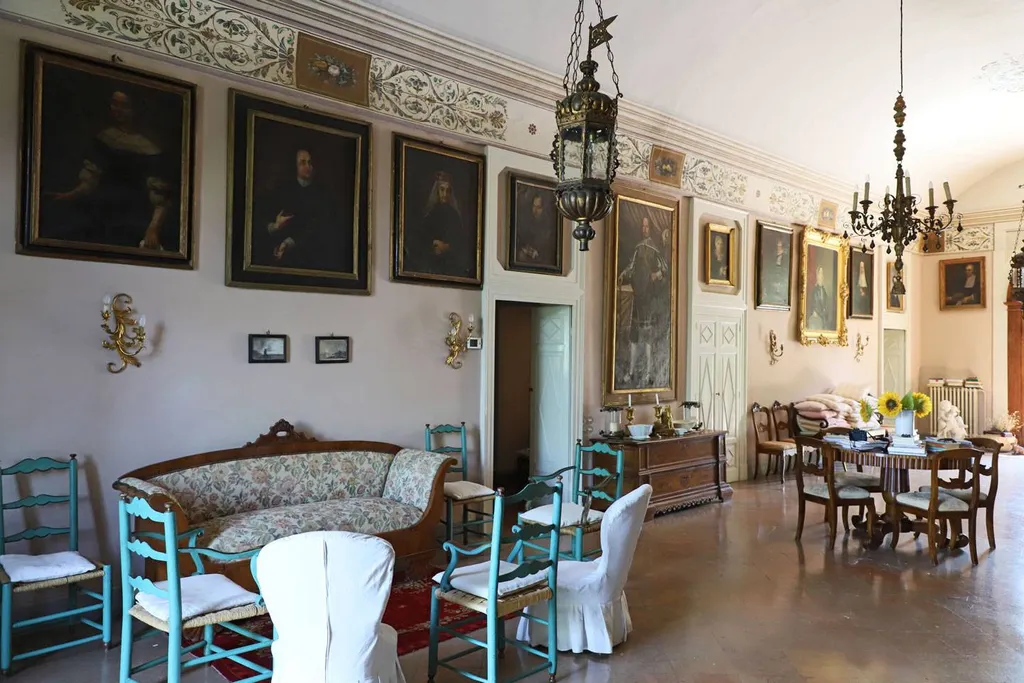 Entrare nella bellezza patrizia di questa dimora storica è paragonabile allimmersione nella scena di un film o nelle pagine di un libro che raccontano leleganza dei dettagli nella loro più rara e preziosa originalità. I soffitti disegnano volumi ampi e sinuosi ripresi dalle poetiche aperture ovali dei piani ammezzati e dalle volte delle alte porte dingresso dei saloni. I pavimenti esibiscono seminati veneziani, marmi e cotto differenziati in base alla destinazione duso degli ambienti scanditi da grandi camini. Gli infissi spalancano ampie porzioni di luce che rendono questa dimora in felice dialogo con la poesia vegetale dellesterno abitato da presenze scultoree solide e fiere come i leoni adagiati in segno di guardia allingresso. Le muse vegliano su questa tenuta che ha fermato il tempo: specchiere dorate, volti di avi dipinti ad olio incorniciati, ricchi lampadari che pendono possenti, appliques lavorate che innalzano le braccia alla stregua di...