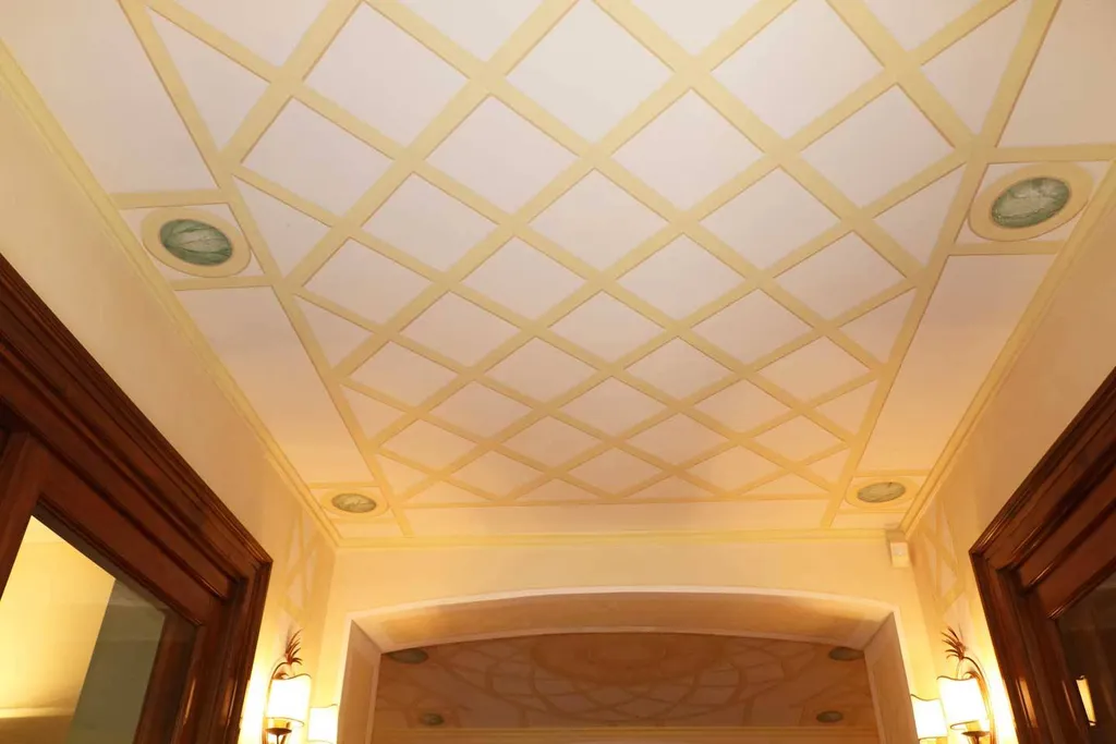 Unequipe di restauratrici delle belle arti si è occupata di ripristinare i decori ed unificare gli ambienti secondo una linea identitaria di gusto, colore, motivi floreali e geometrici.