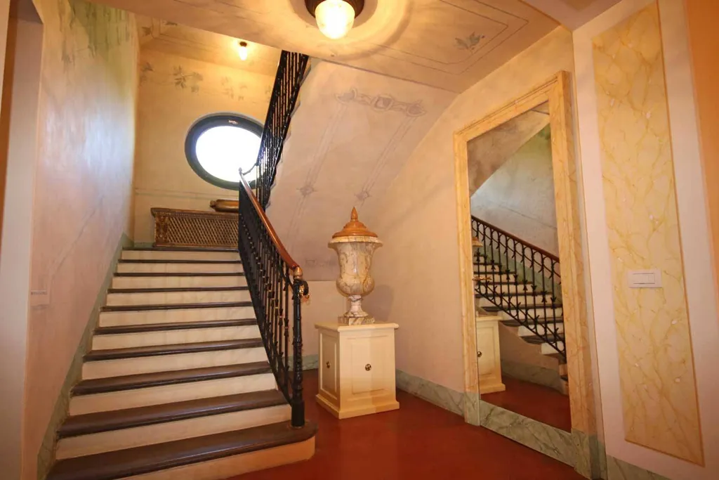 Una comoda scala in muratura conduce al 1° piano, attualmentre dedicato alla zona notte. (Alcuni locali sono accatastati come locali cantina)