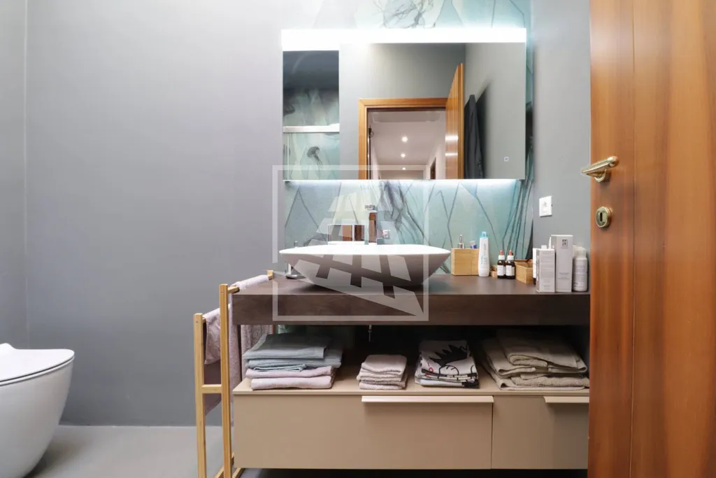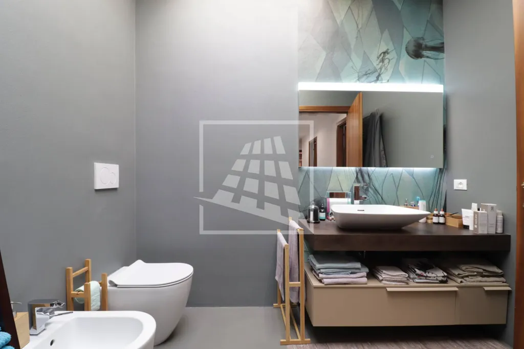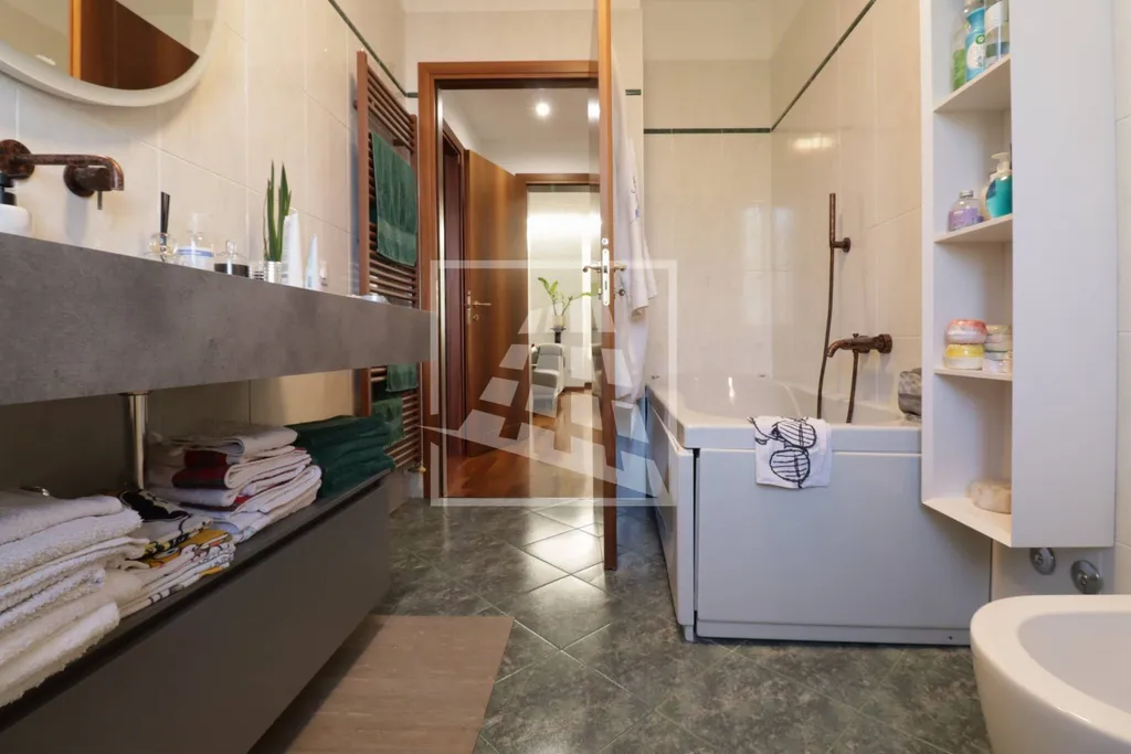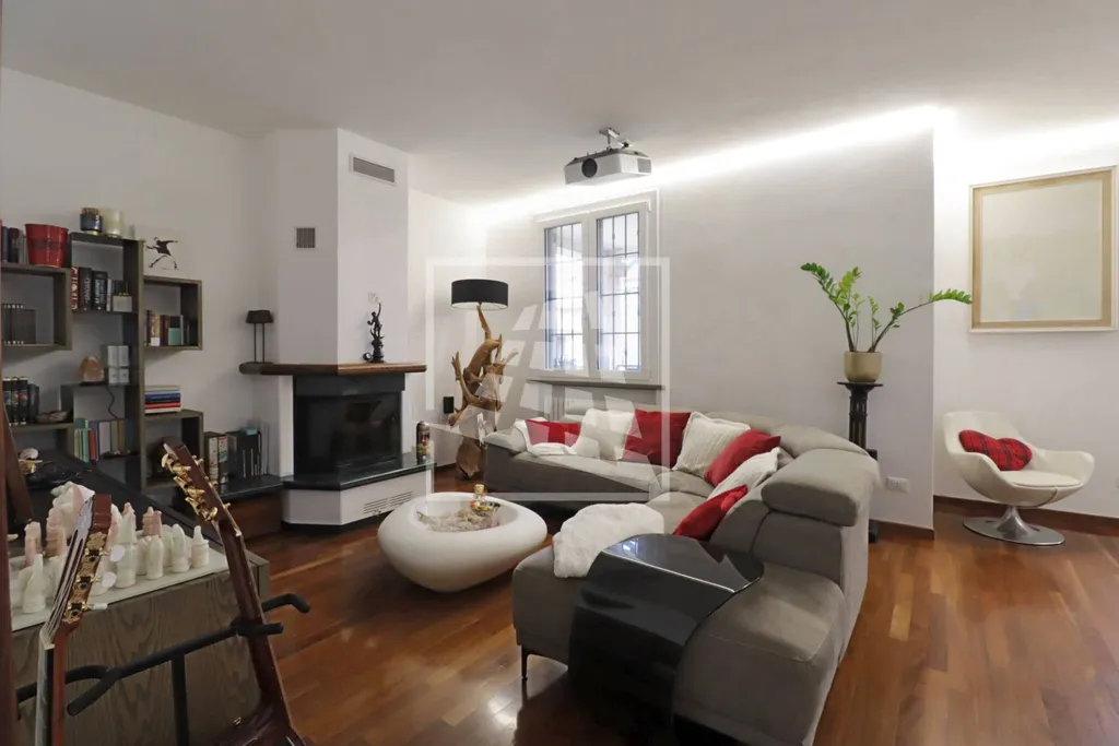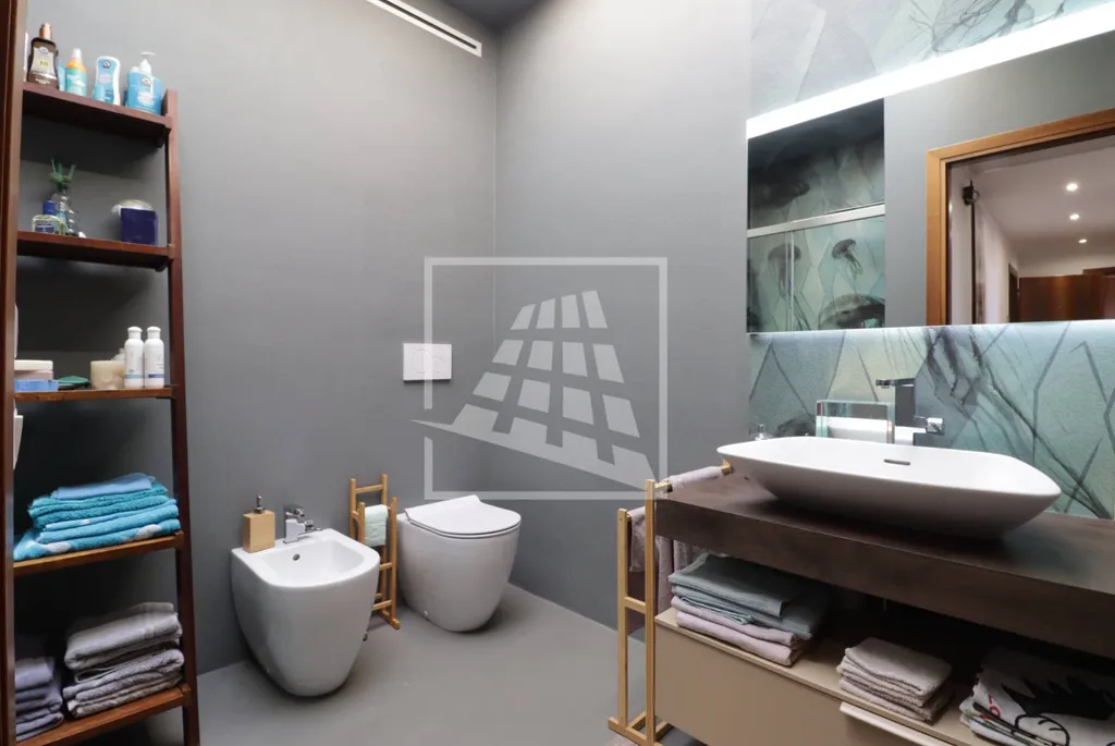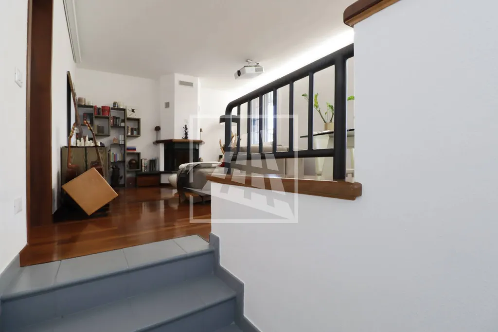 Salendo al piano superiore, il primo piano accoglie un luminoso soggiorno con camino che si apre su un ampio balcone panoramico, perfettamente vivibile; completano il piano una spaziosa cucina abitabile e una zona notte composta da due camere matrimoniali, una terza camera ideale come guardaroba o studio con ulteriore balcone e due bagni moderni, finemente rifiniti.