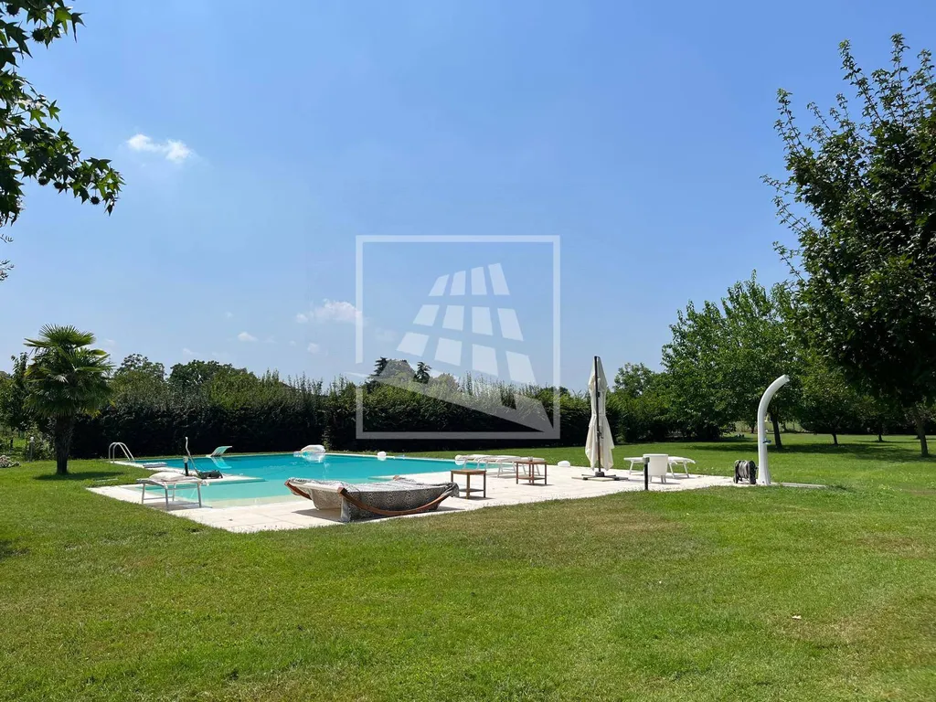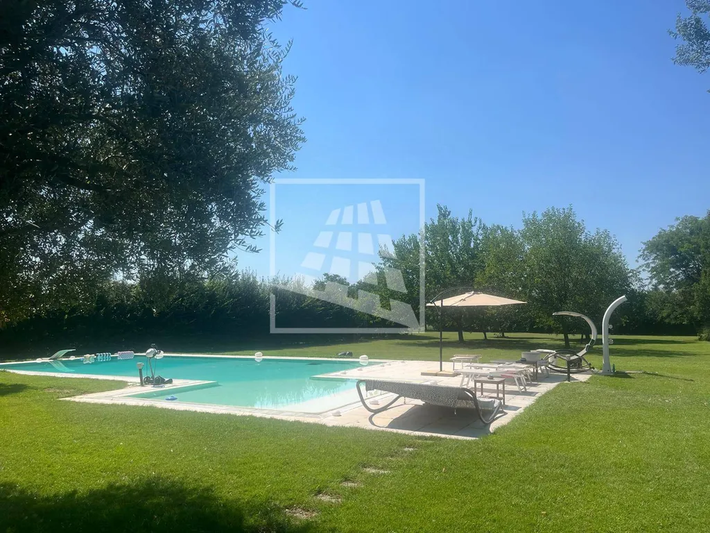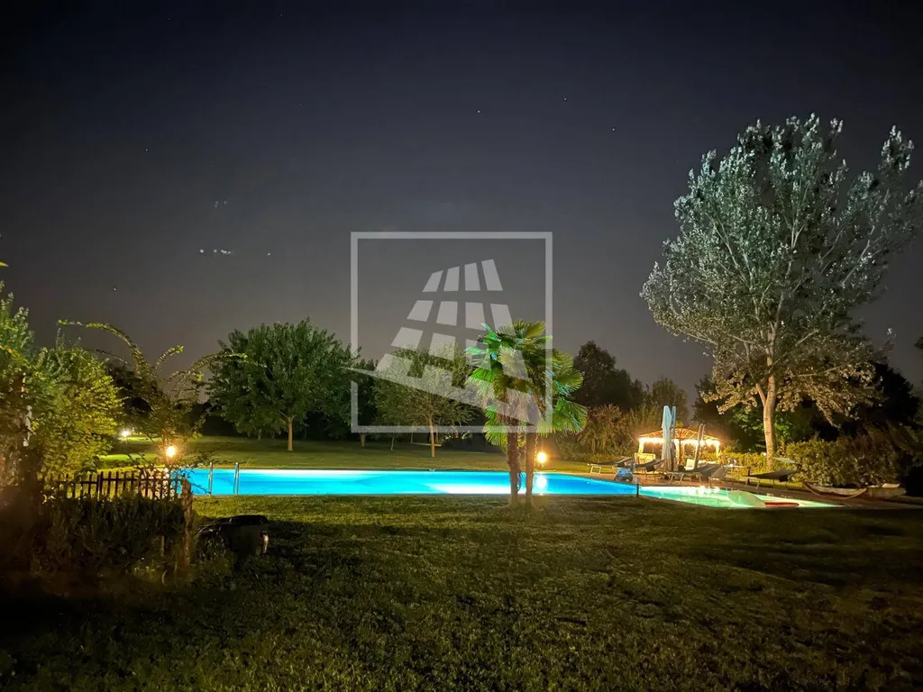 La proprietà è circondata da un maestoso parco privato di 3.000 mq con frutteto e piscina interrata, ideale per vivere momenti di relax all'aperto.