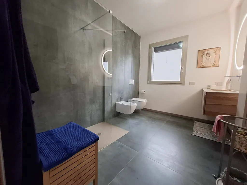 Rifiniture di alto pregio con caratteristica scala interna in ferro/legno con parapetti in cristallo, raffrescamento e riscaldamento a pavimento con deumidificazione, 5 kw di accumulo, ricarica elettrica.