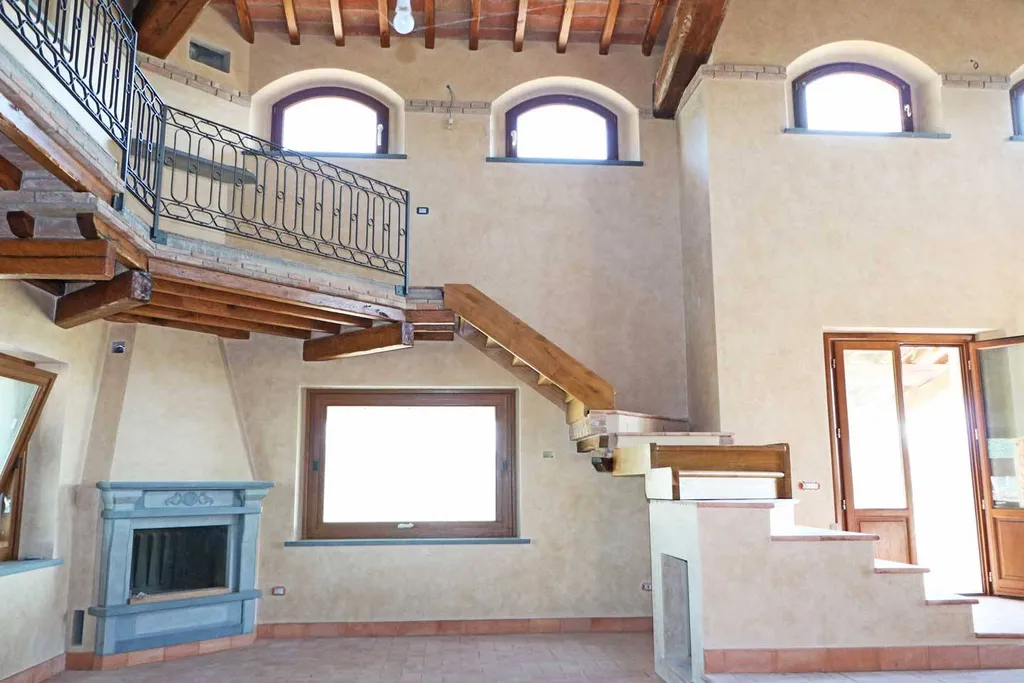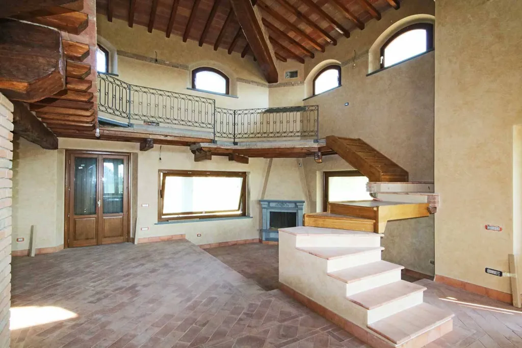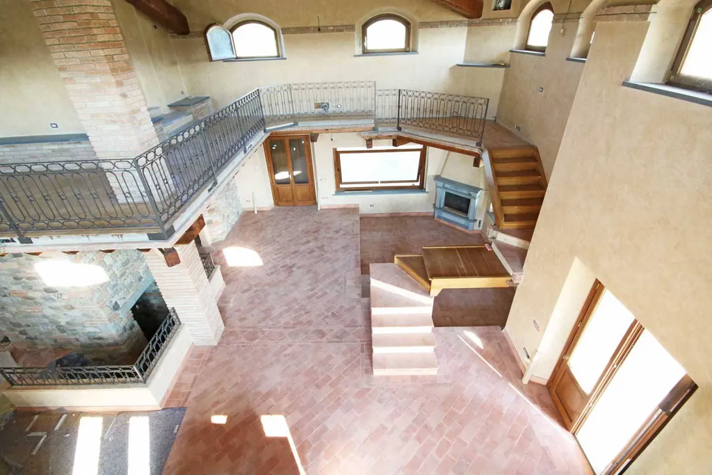 Il grande porticato di 100 mq., affacciato sulle colline, completa la vivibilità della zona living. Zona relax con camino, comoda cucina abitabile , bagno giorno. Area notte: importante camera padronale servita di bagno e cabina armadi, altra camera matrimoniale e bagno. Dal salone una comoda scala addossata alla parete conduce al 1° piano ( 60 mq.), che ospita la 3° camera da letto con bagno e terrazzino ed un ampia area soppalcata con zona bar, aperta sul salone..
