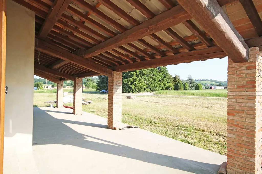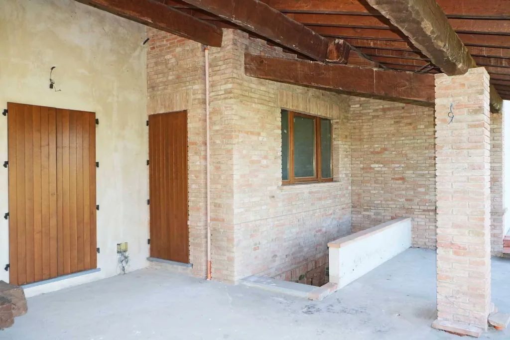 Esternamente vanno ultimati: giardino, recinzioni e cancelli, rete fognaria, allacci utenze, pavimentazione portico, tinteggi, parziale posa di coppi sul manto di copertura del porticato.