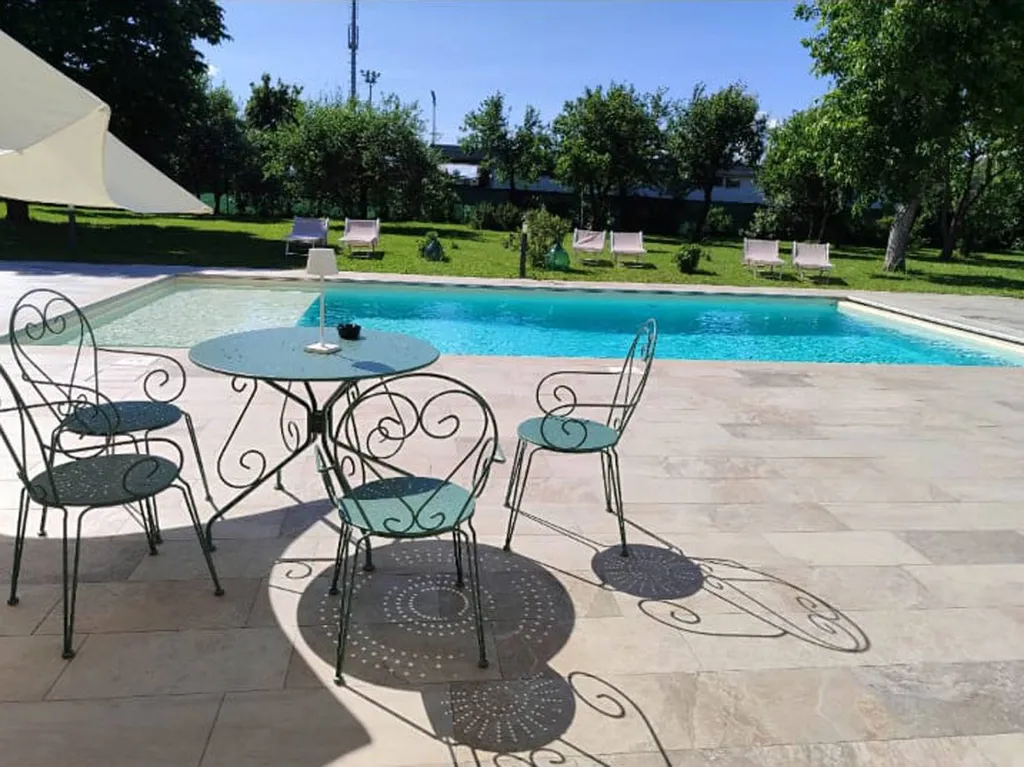 Varcando il cancello, si viene accolti da un ampio parco privato, uno spazio intimo e avvolgente, pensato per offrire privacy, silenzio e benessere. Al centro del giardino, la piscina a acqua salina di 10 x 5 metri diventa il fulcro della vita allaperto: un luogo dove il tempo rallenta, tra giornate di sole, momenti di relax e convivialità.