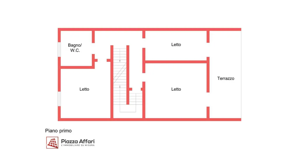 Il piano primo è dedicato alla zona notte, con due camere da letto matrimoniali, una camera singola, un terrazzo comunicante e un bagno finestrato.
