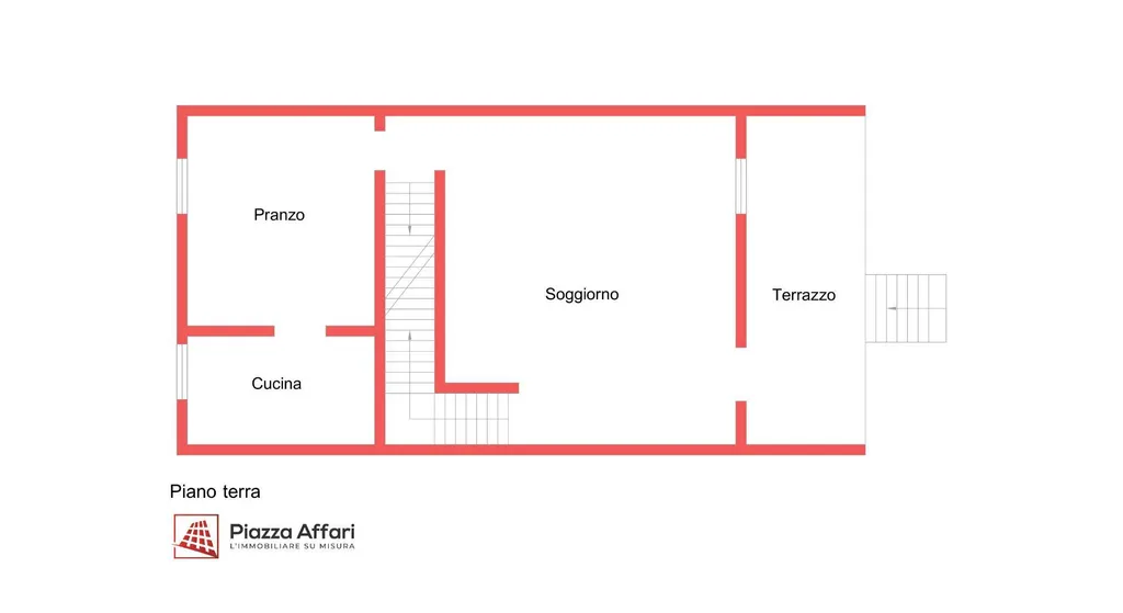 Il piano terra ospita la zona giorno con ingresso principale su terrazzo esposto ad est, ampio soggiorno, sala da pranzo e cucina con affaccio diretto sul giardino di proprietà.