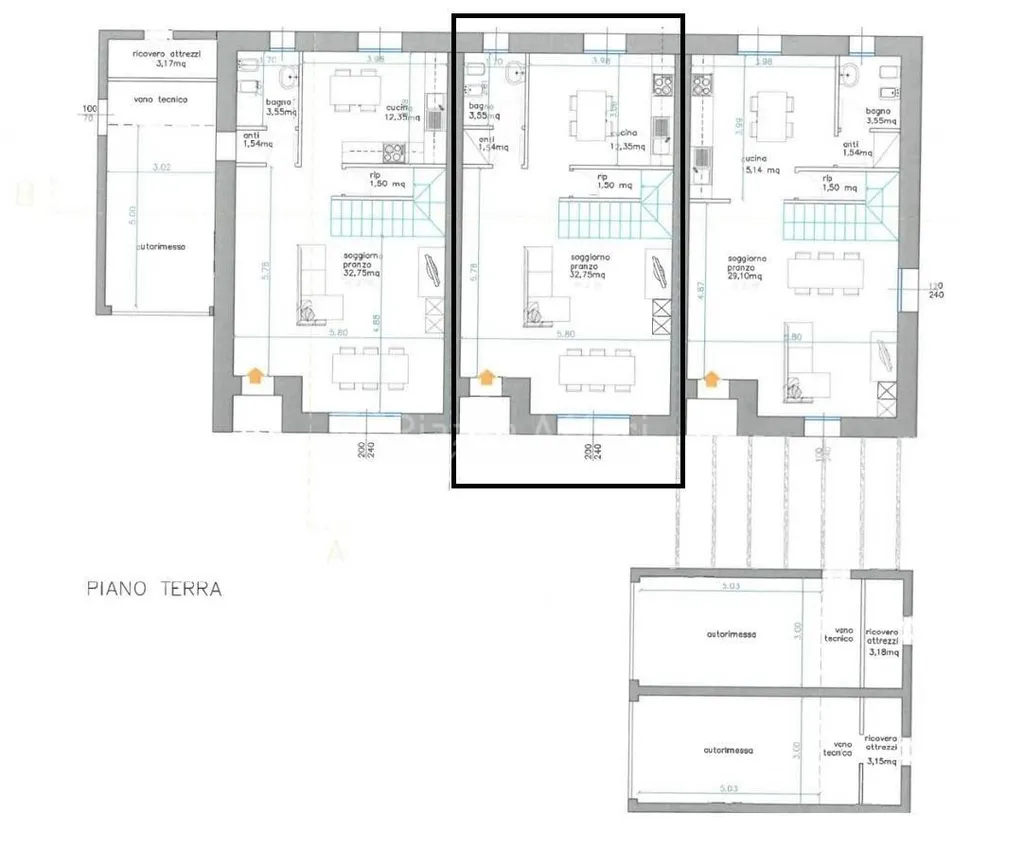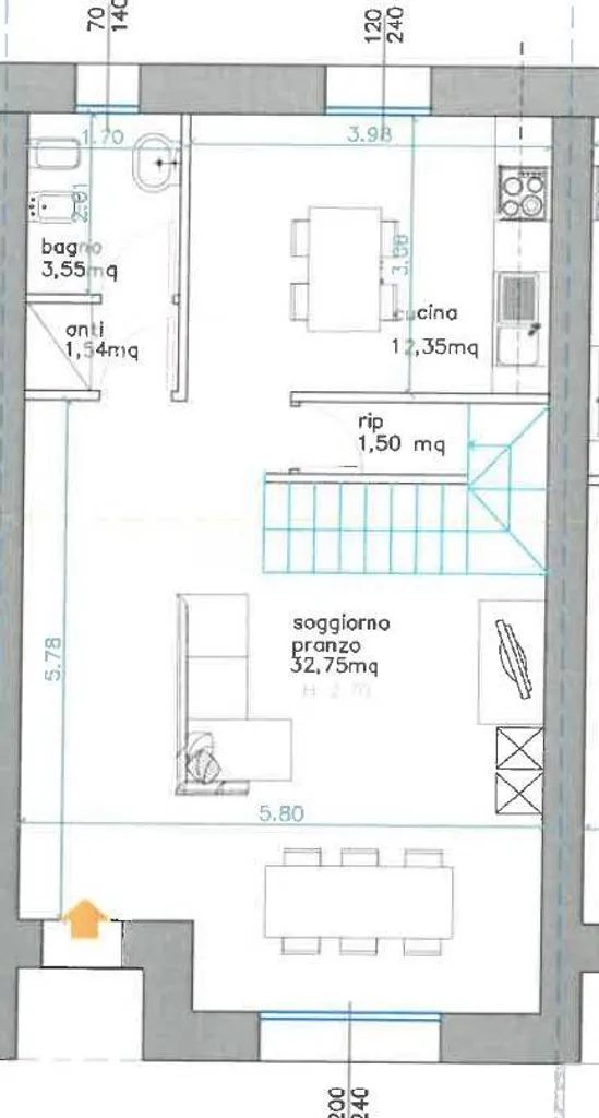 ingresso tramite giardino e porticato, ampio soggiorno di 33 mq, cucina abitabile di circa 13 mq, anti bagno e bagno finestrato, ripostiglio/armadio a muro