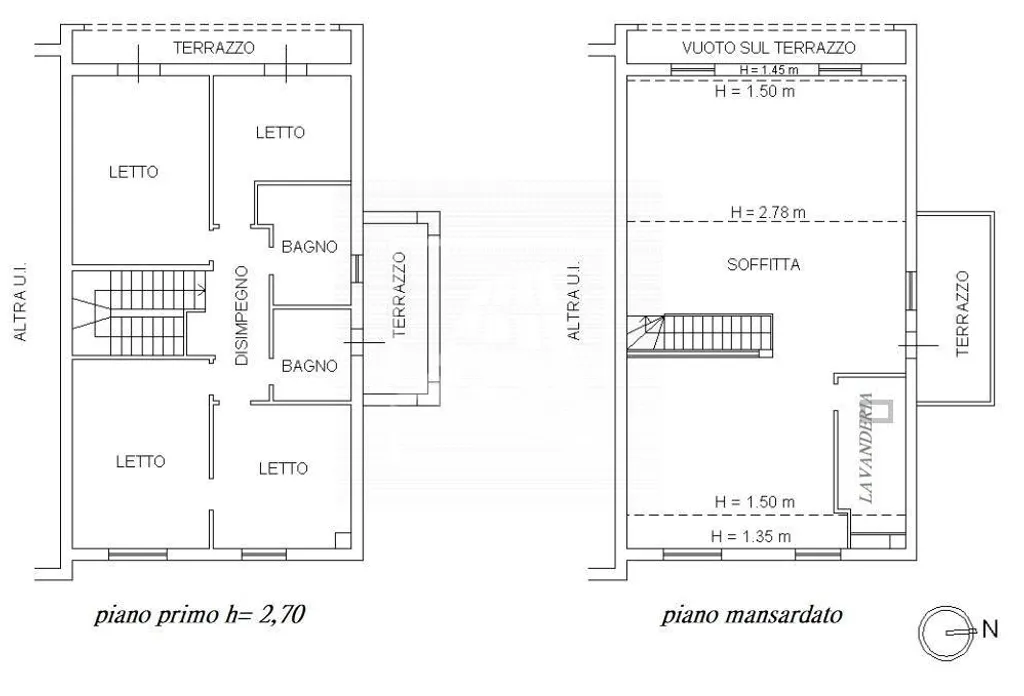 Salendo al piano superiore, si raggiunge il sottotetto di circa 75 mq (con altezza minima di 1.35 mt), attualmente adibito a sala svago, dotata di balcone e lavanderia con velux.