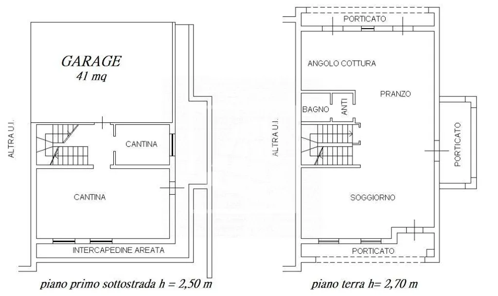Completano la proprietà al piano seminterrato, due cantine (per un totale di circa 34 mq) e un garage doppio in larghezza di 41 mq con accesso diretto dall'abitazione.